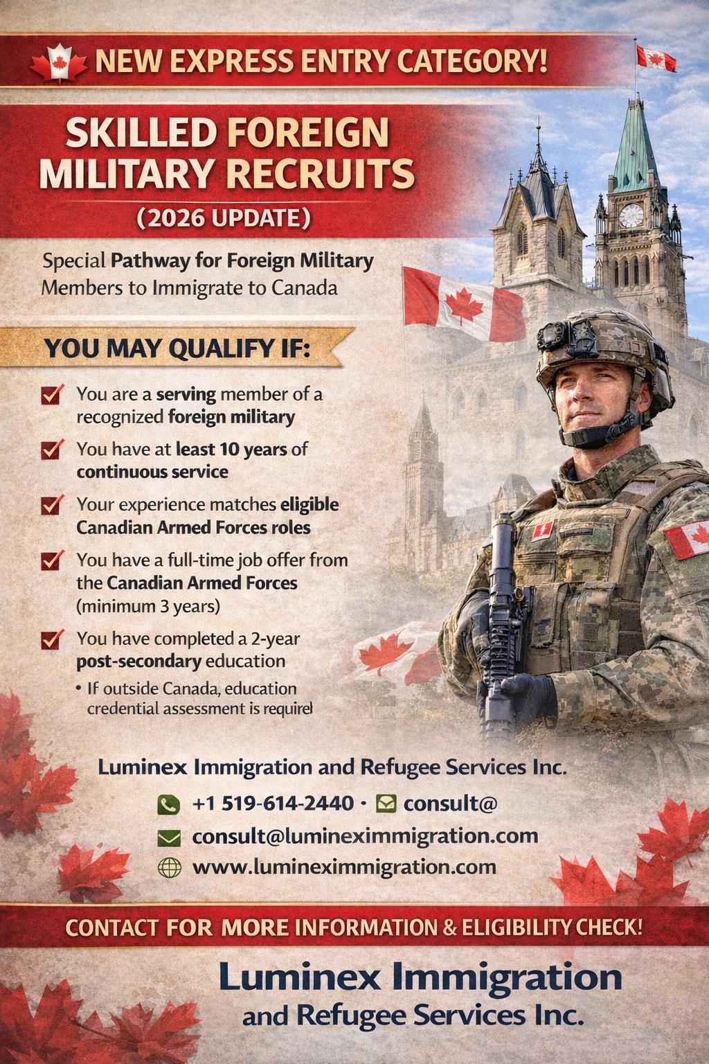 Unlike general Express Entry draws, this category has very specific eligibility requirements. If you have military experience and want to immigrate to Canada, here is what you must know.